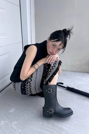 Buckle rain boots(black)