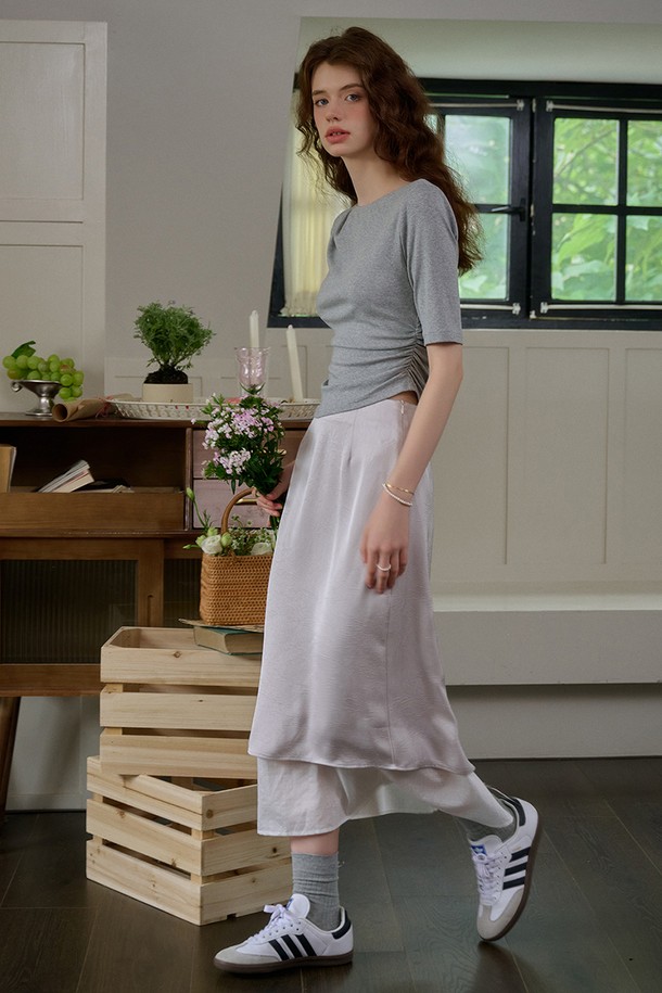 SR_Jacquard straight slit hem skirt