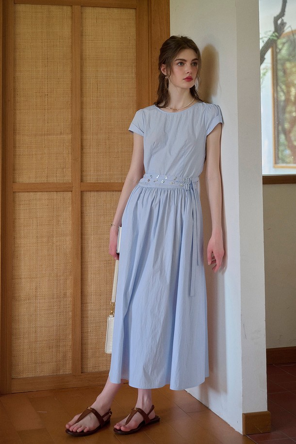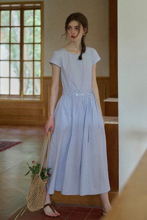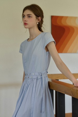 Waist tie simple short sleeve dress