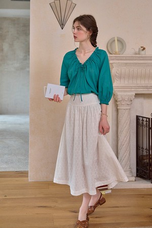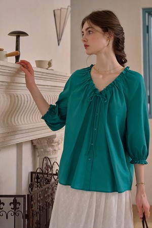 Cotton v-neck pleated shirt