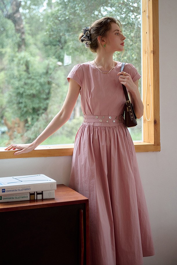 Cool shell button short sleeve dress