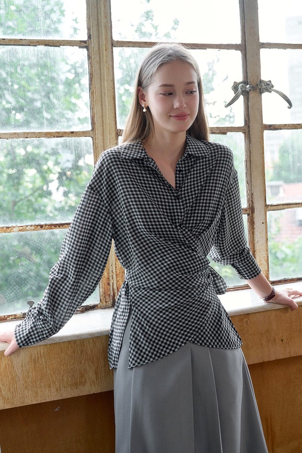 Style strappy plaid blouse_2color