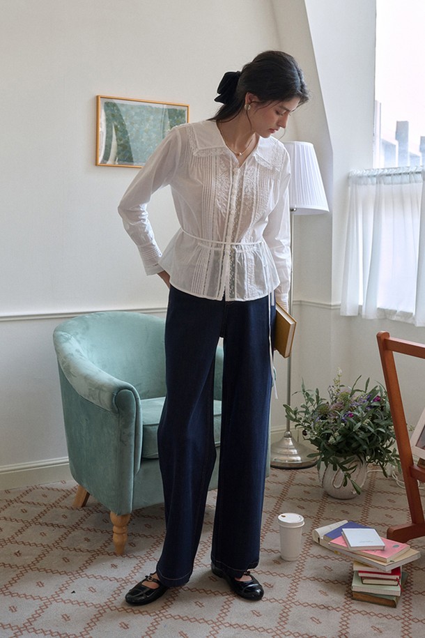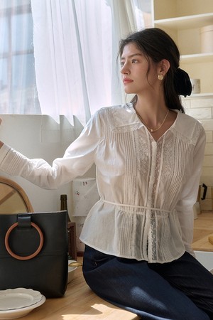 Paneled lace collar blouse