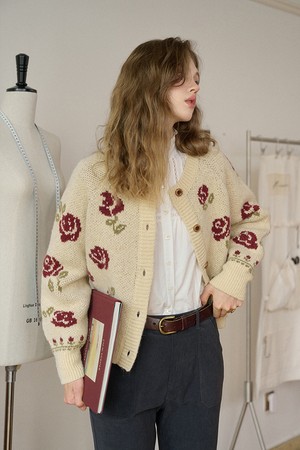 Rose jacquard knitted cardigan_2color
