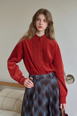 Tied strip corduroy shirt_2color