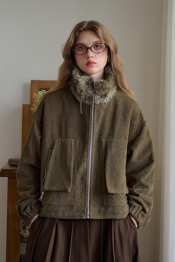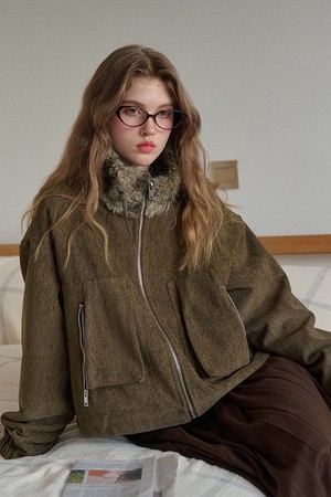 Fur collar corduroy short jacket