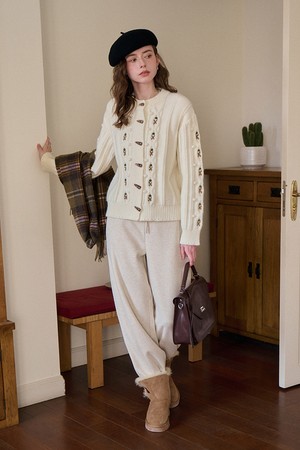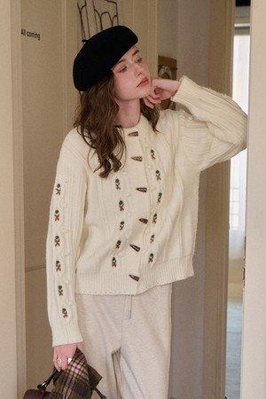Embroidered horn knit cardigan