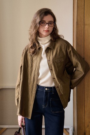 Wrinkled textured lapel shirt