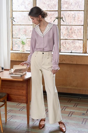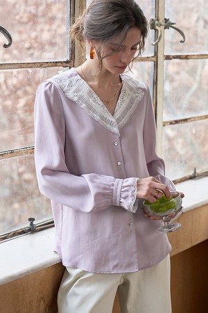 Lace lapel long-sleeve blouse