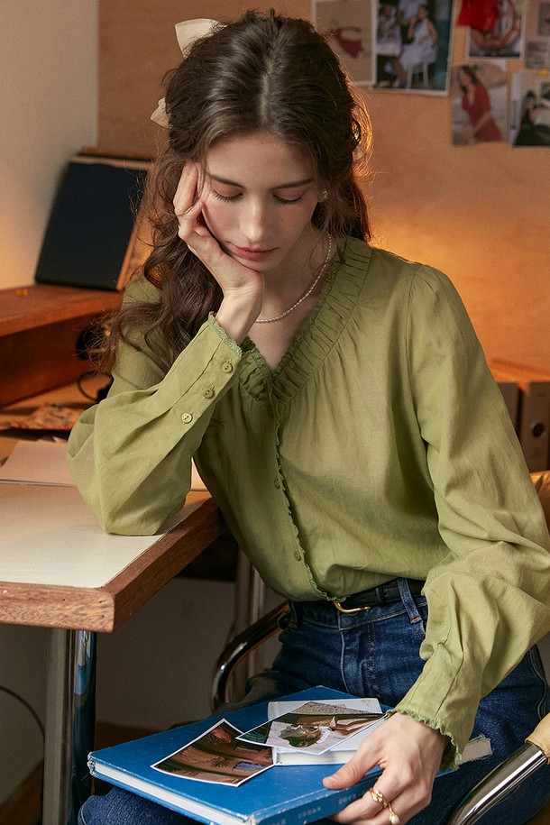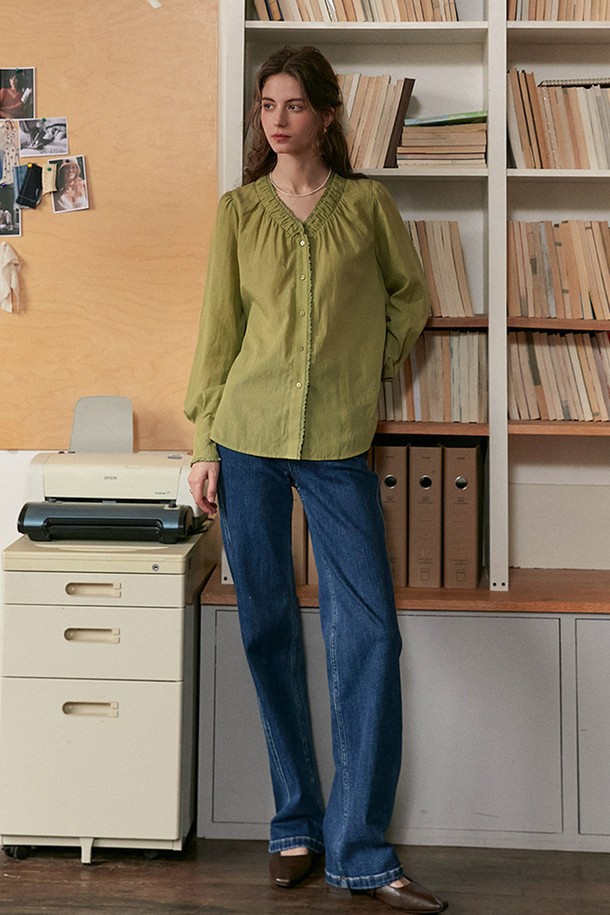 Pleated v-neck blouse