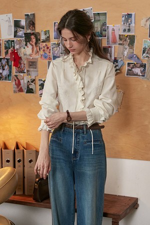 Ruffle lace long blouse