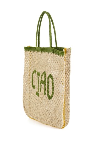 'Ciao Lemon' Large Bag - Fern, natural and yellow