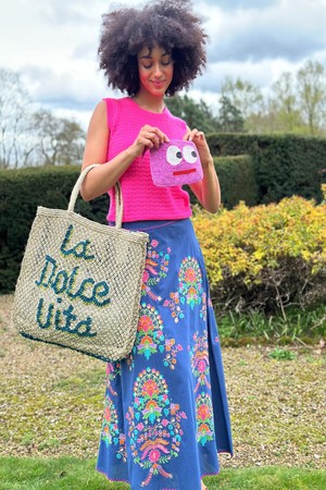 Big Eyes With Mouth Mini Beaded Purse - Pink