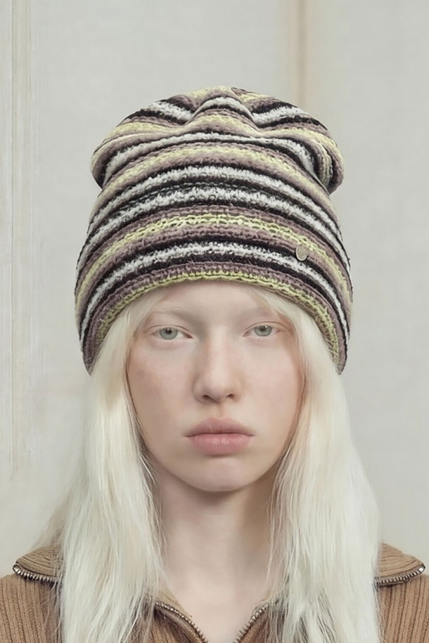 여름 롱비니 SQUARE NET BEANIE / STRIPE / LEMON BROWN