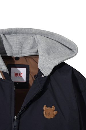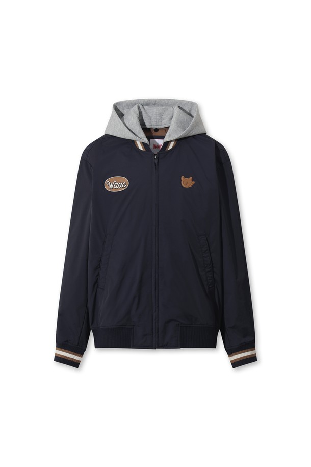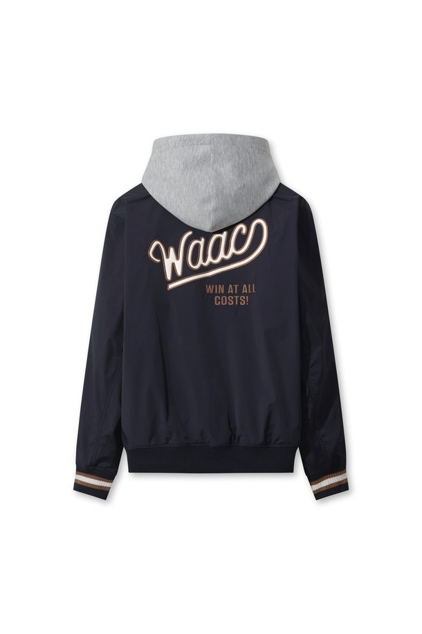 네이비와 그레이 컬러로 출시된 남성용 바시티 재킷입니다. 폴리에스테르와 나일론 소재로 제작되어 간절기, 봄, 가을에 착용하기 좋습니다. 레귤러핏에 집업 스타일로, 탈부착 후드, 립 조직(시보리), 포켓 디테일이 돋보입니다.
