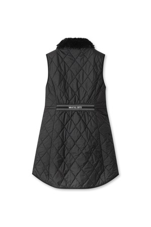 세련된 여성 웬지 패디드 원피스 베스트입니다. 겨울철 라운딩과 일상에서 우아하고 스포티한 스타일을 연출할 수 있습니다. 부드러운 나일론 소재와 두꺼운 두께감, 하이넥 디자인이 보온성을 높여줍니다. 허리 스트링으로 실루엣을 조절하여 A라인 핏을 완성할 수 있으며, 민소매 집업 스타일로 간편하게 착용 가능합니다. 블랙 컬러의 무지 디자인으로 어떤 옷에도 쉽게 매치하여 미니멀한 골프룩을 연출해보세요.
