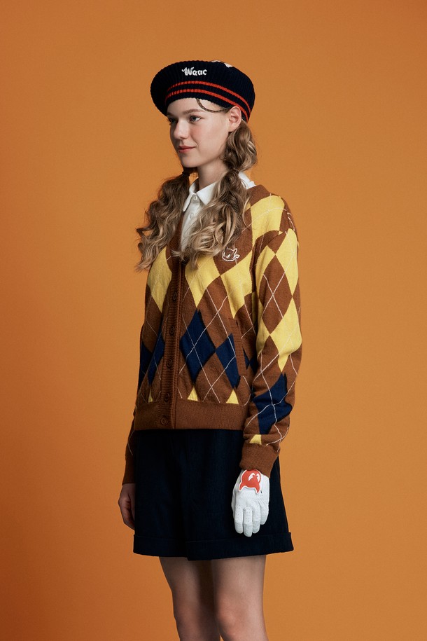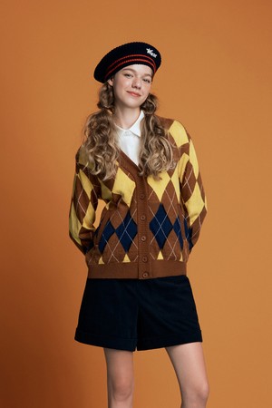 Women Argyle Knit Cardigan