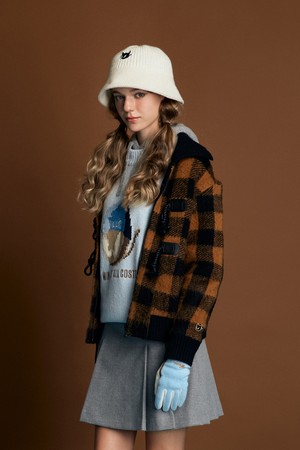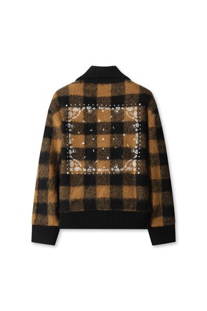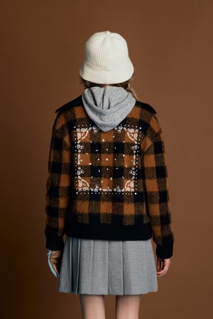 Women Tartan Check Knit Blouson Jacket