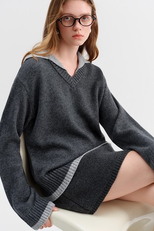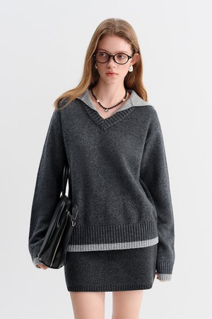 Contrast color lapel sweater