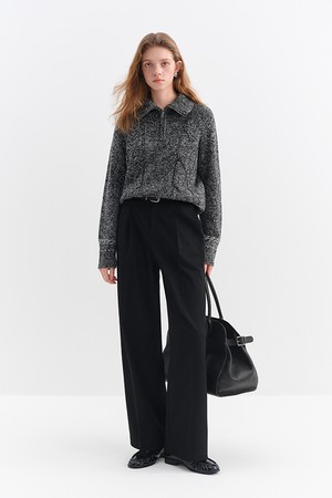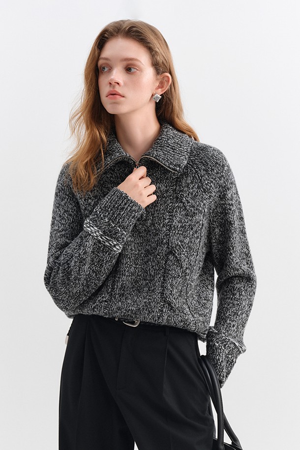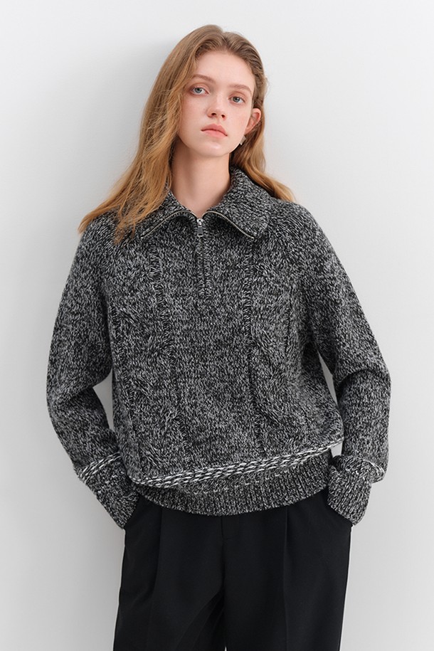 블랙과 그레이 컬러로 구성된 여성용 하프 집업 풀오버 스웨터입니다. 울 소재로 제작되어 부드러운 촉감을 선사하며, 가을과 겨울에 따뜻하게 입을 수 있습니다. 레귤러 핏에 하프넥 디자인으로, 베이직하면서도 캐주얼한 스타일을 연출합니다. 긴 소매와 두꺼운 두께감으로 보온성을 높였으며, 하프 집업 디테일로 포인트를 더했습니다. 출근룩이나 모임룩 등 다양한 TPO에 캐주얼, 클래식, 미니멀 스타일로 활용하기 좋습니다.