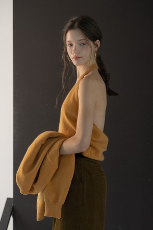 Backless knit vest and cardigan set_MUSTARD