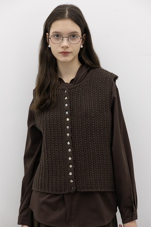 Grid knit vest_BROWN