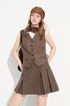 Vintage plaid pleated skirt