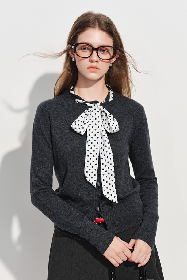 Polka dot scarf neck blouse cardigan