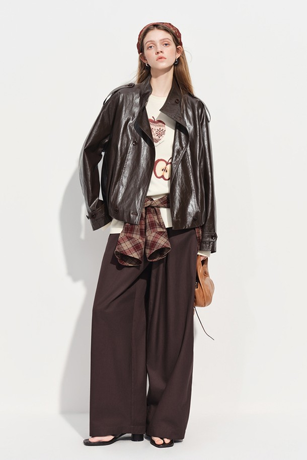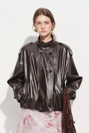 Loose glossy leather jacket