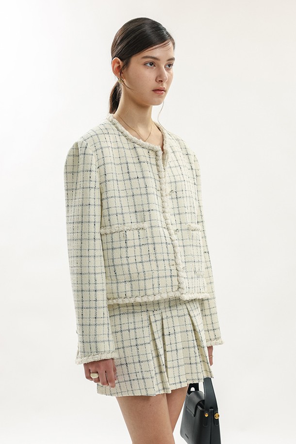 Check tweed mini skirt_IVORY