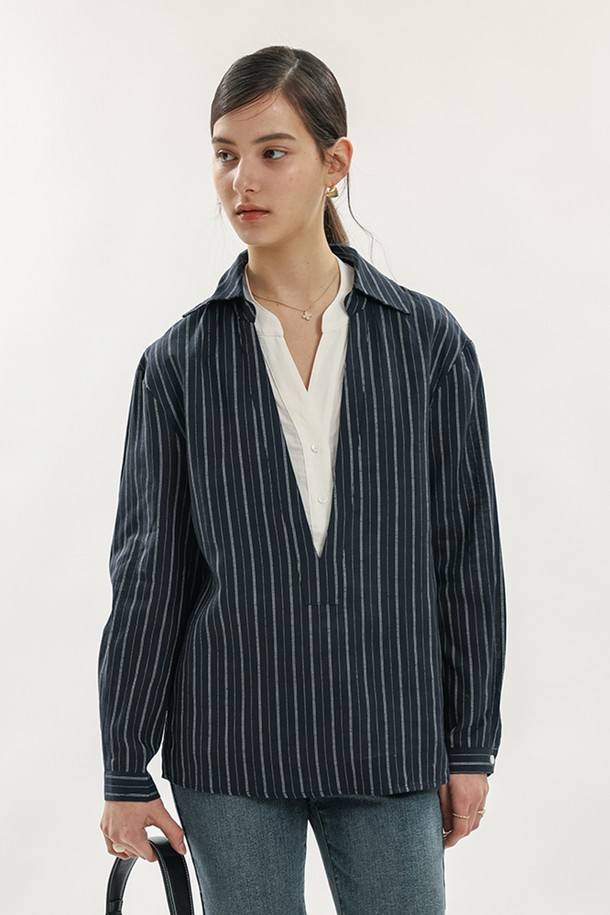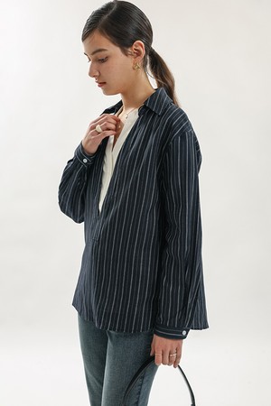 Layered stripe fake two-piece shirt_2color