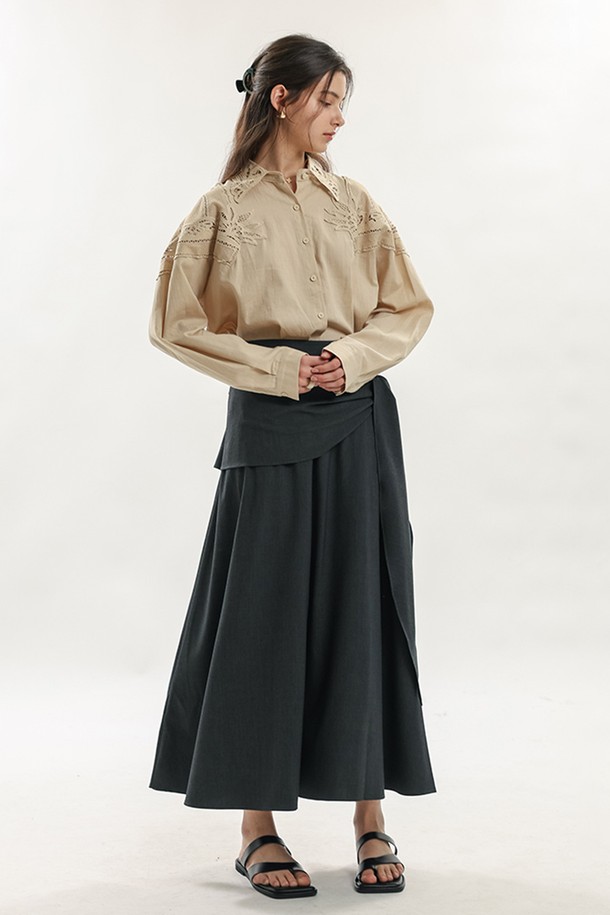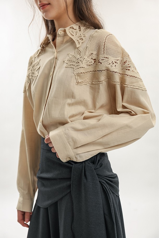 Floral embroidery shirt_BEIGE