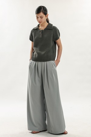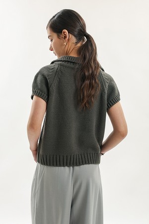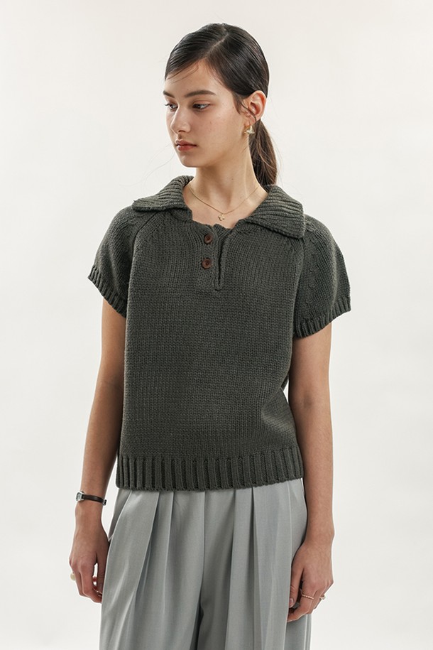 Short sleeve collar knit top_CHARCOAL