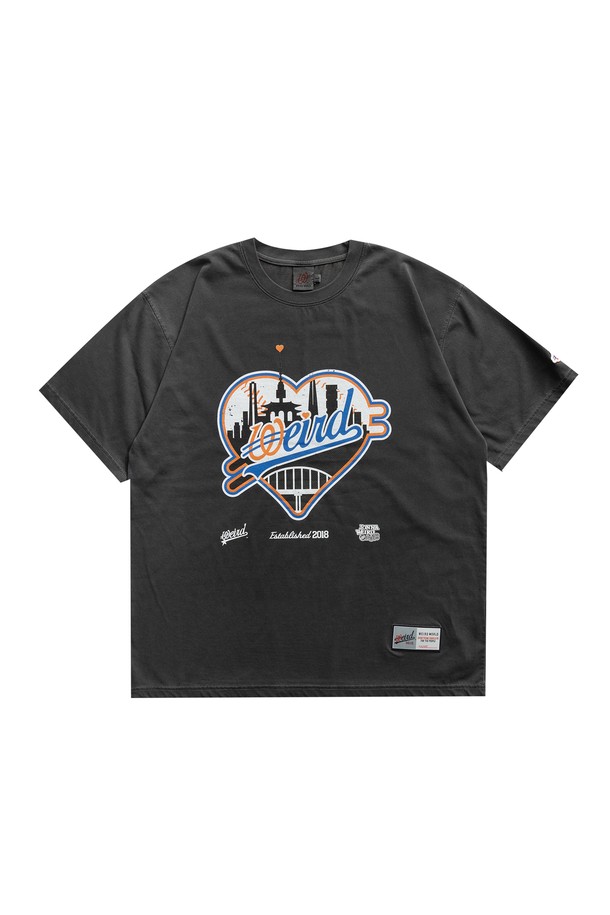 위얼드월드 하트 타워 피그먼트 티셔츠 차콜