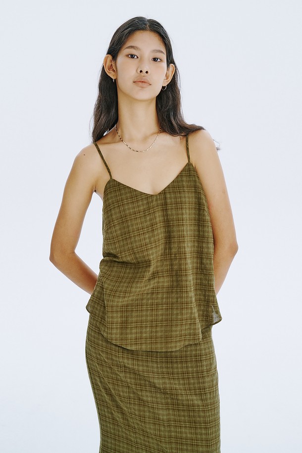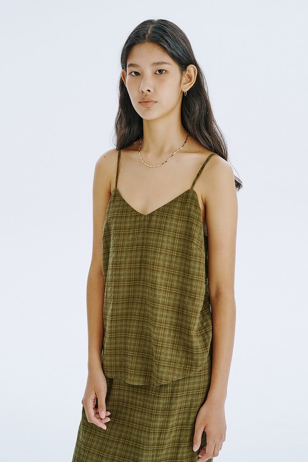 Check Sleeveless Top_Khaki