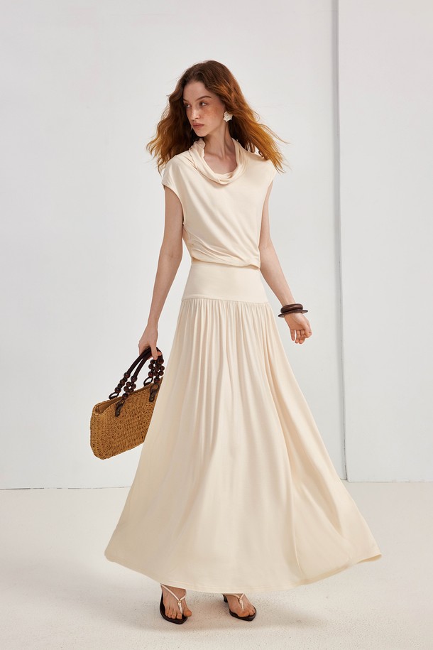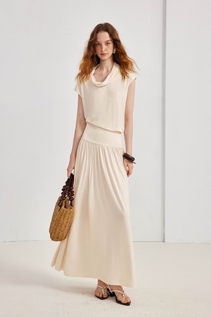 Swing neck waist slim dress