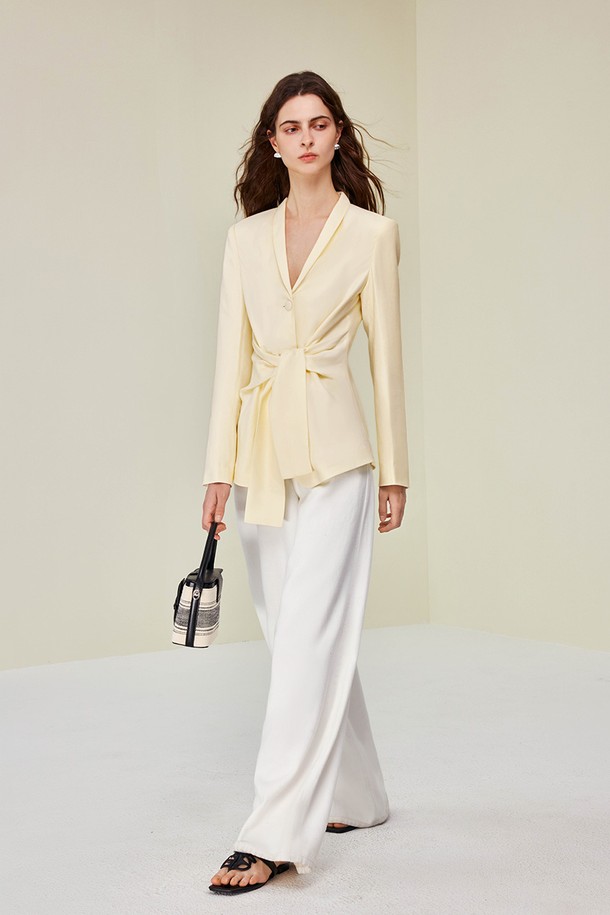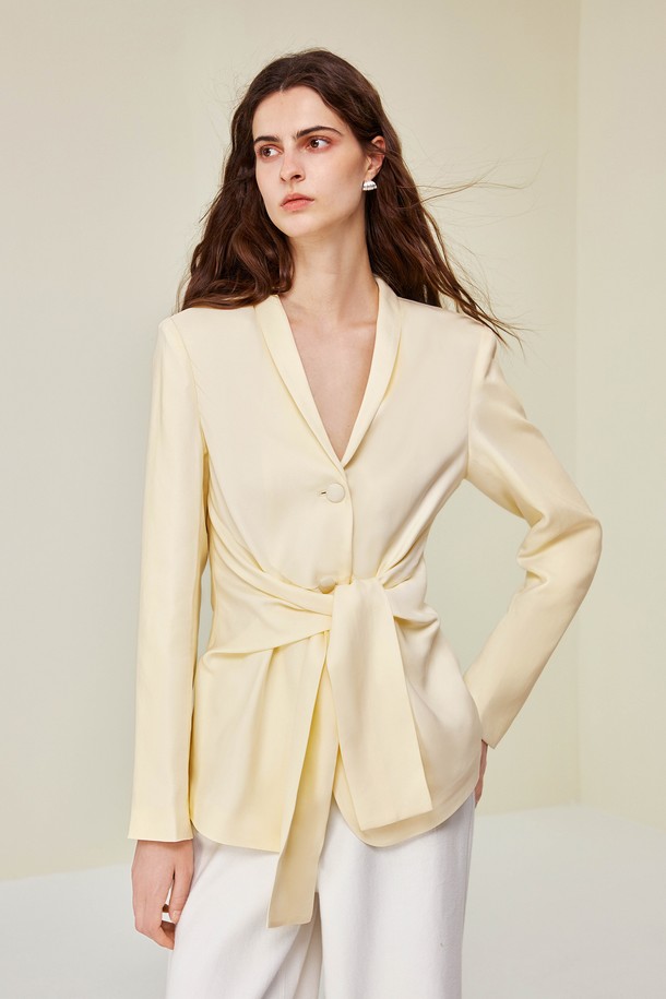 Wind tencel tie waist jacket