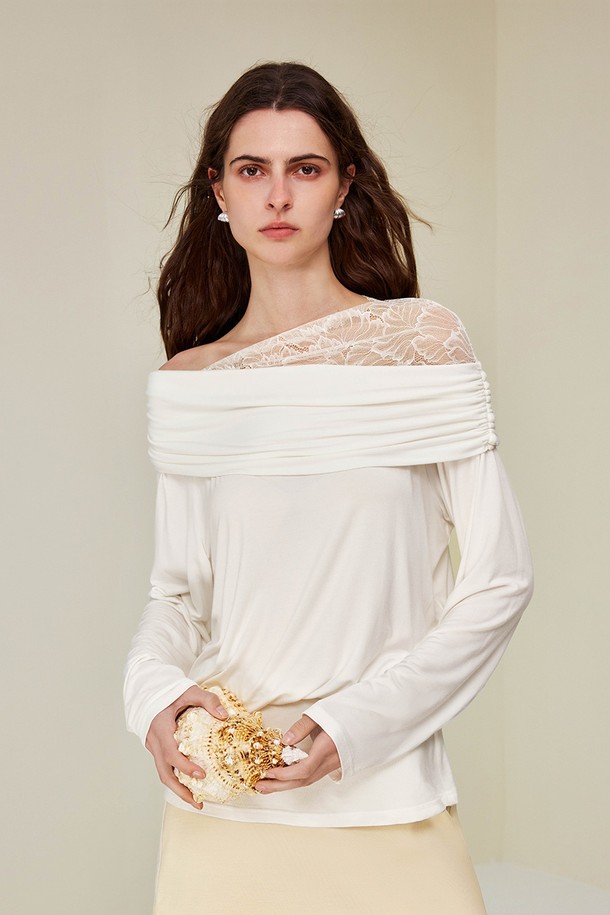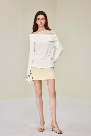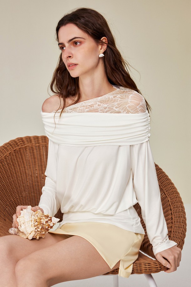 Lace straight shoulder white top