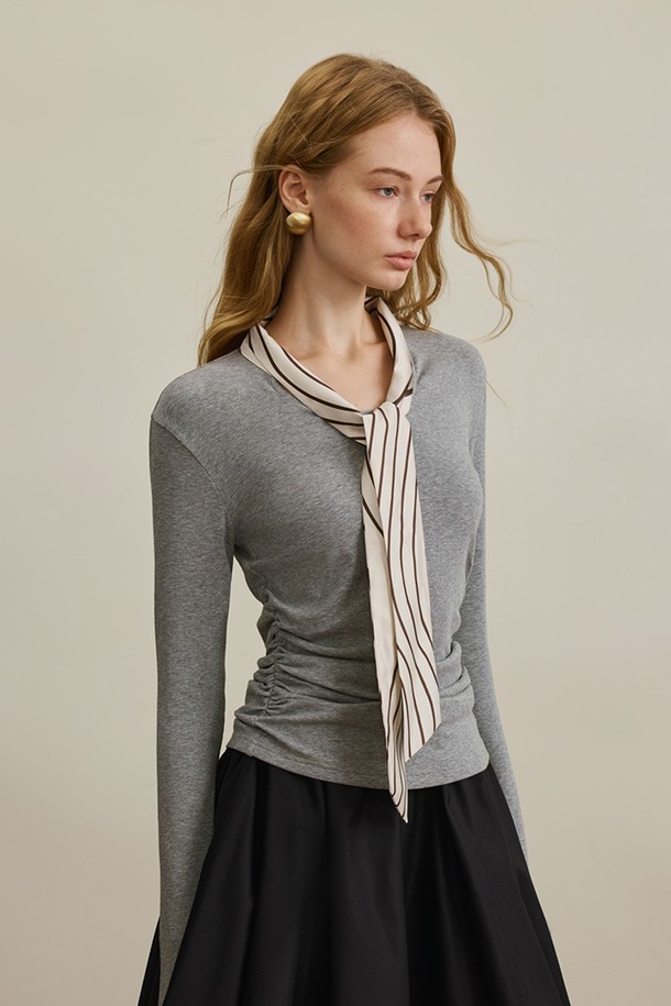 Waist slim crew neck top_2color