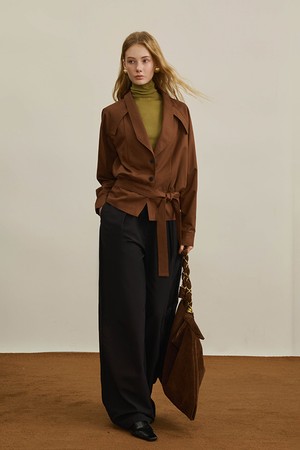Brown lapel waist jacket