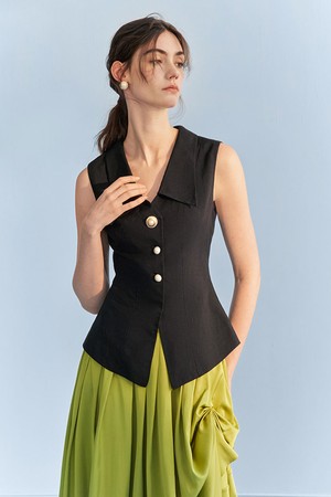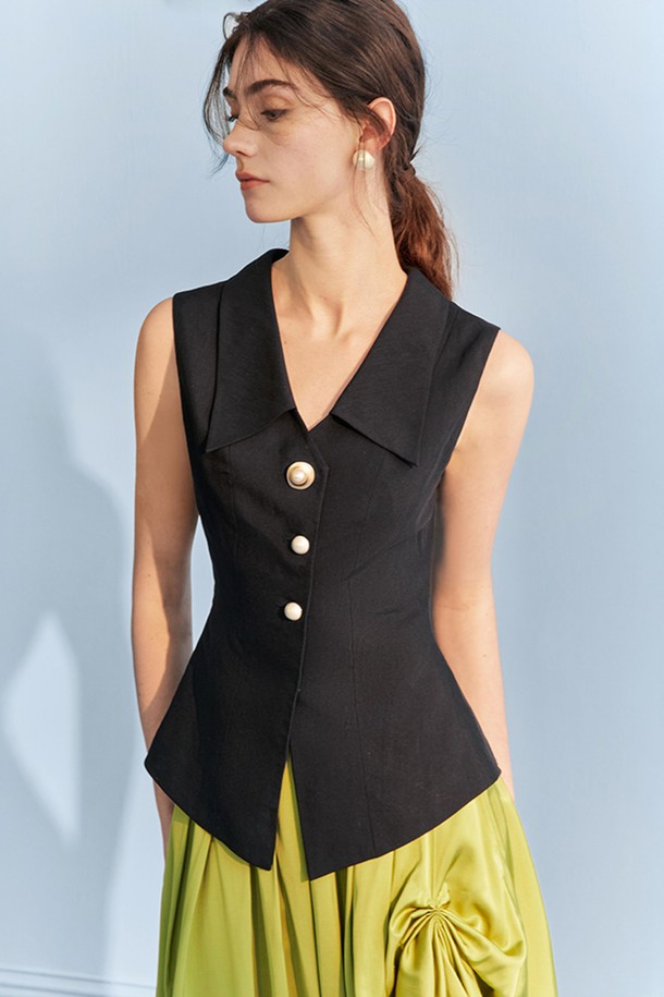 YY_Black pearl buckle vest