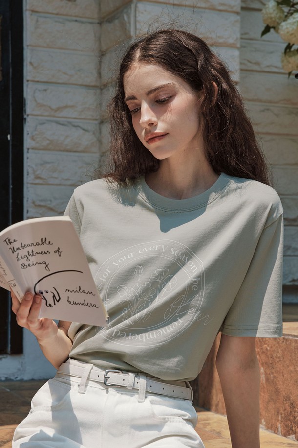 플라워 레터링 반팔 티셔츠 / 라이트 카키