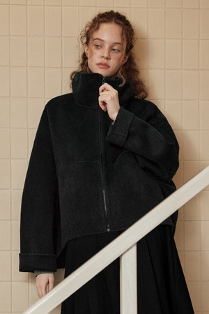 [2컬러] 캐시미어 하이넥 집업 하프 코트