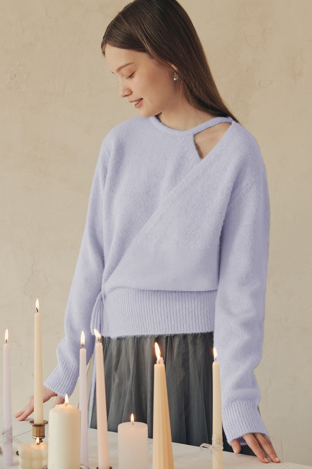 [김유정 착용] 울 블렌딩 랩 스웨터 / 라벤더