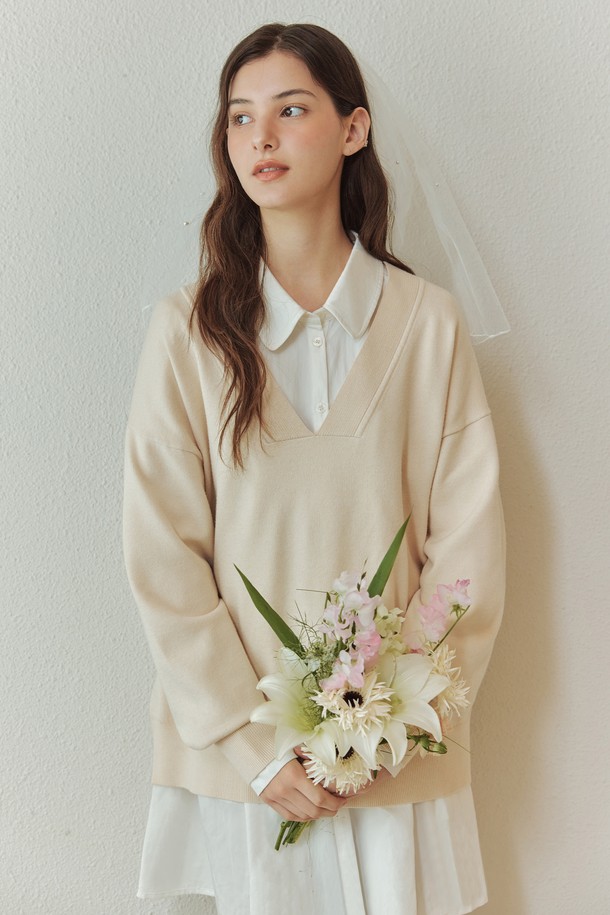 오버핏 브이넥 스웨터 / 버터 옐로우