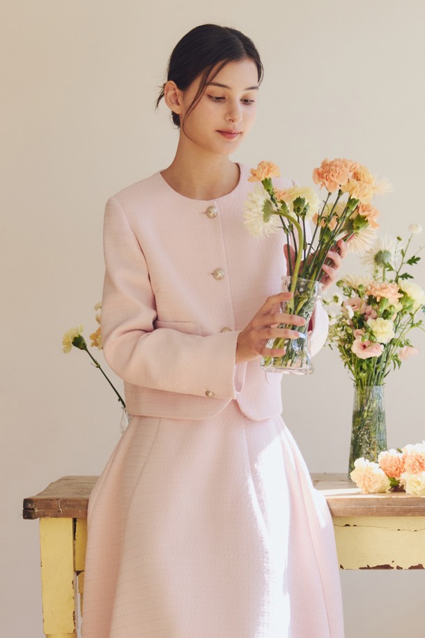 크리미 트위드 자켓 / 핑크