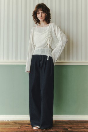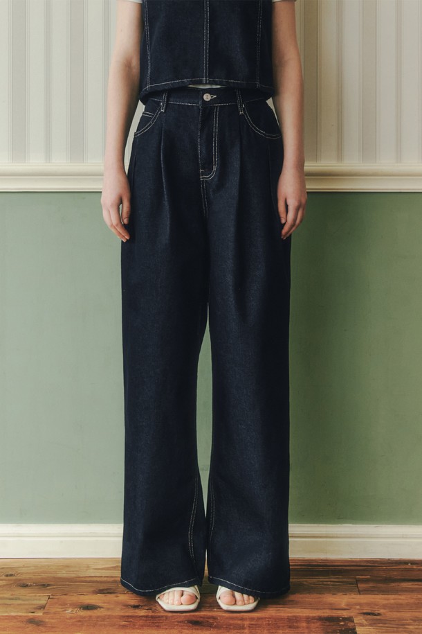핀턱 와이드 데님 팬츠 / 딥인디고