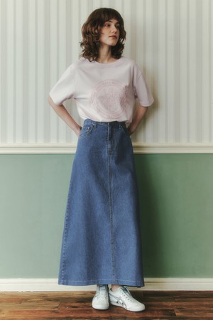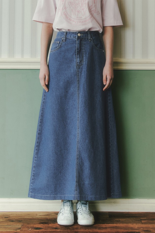 밴딩 데님 롱 스커트 / 인디고
