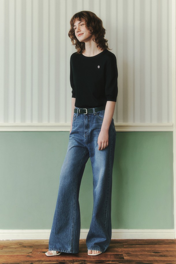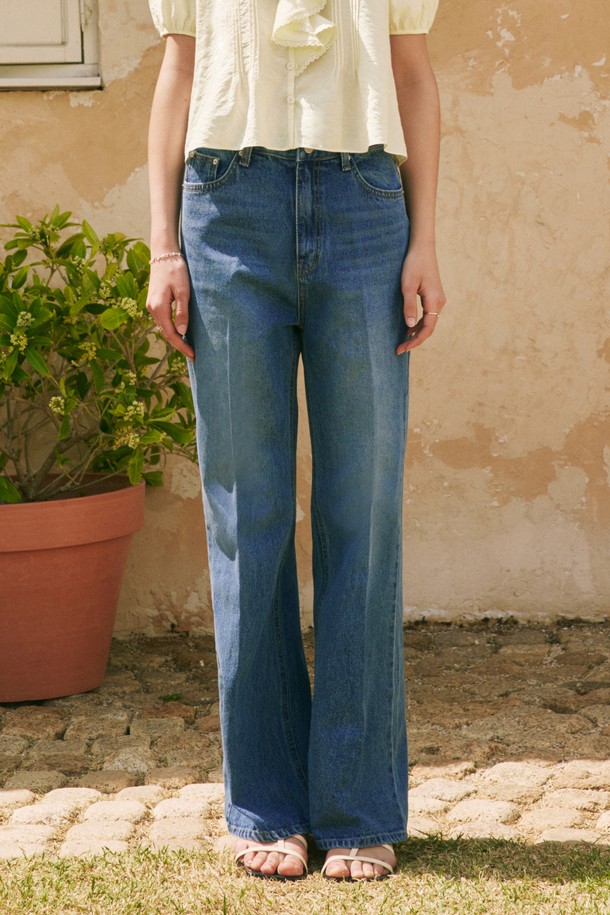워싱 세미 부츠컷 데님 팬츠 / 인디고