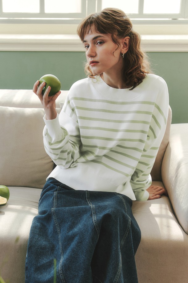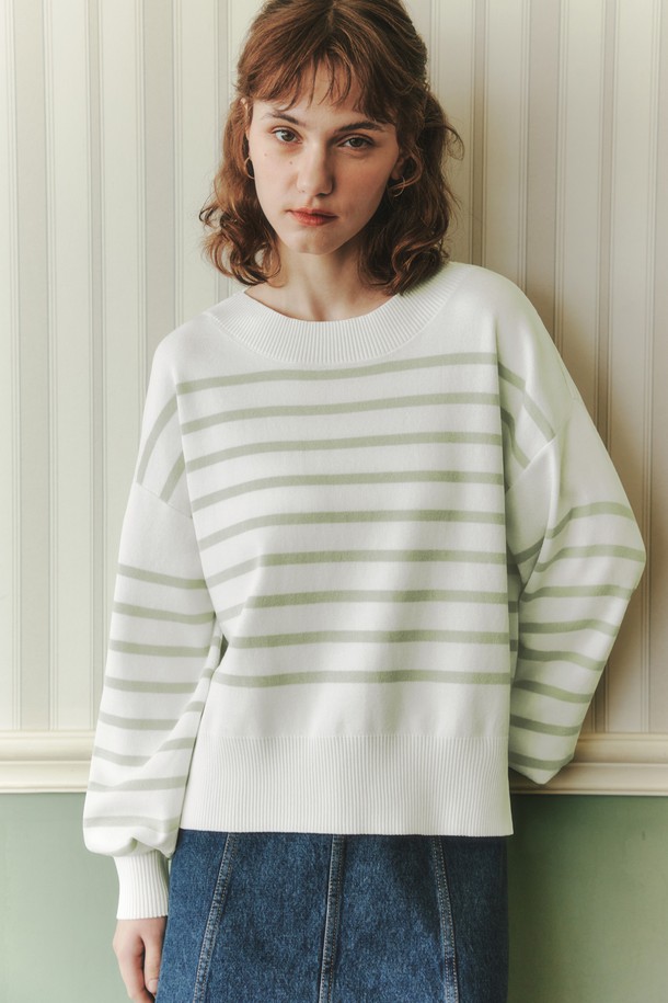스트라이프 라운드넥 니트 / 민트